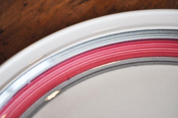 ドイツ・DDR東ドイツHennebergPorzellan デザートプレート/ピンク×グレーライン